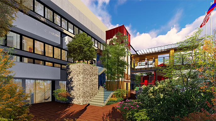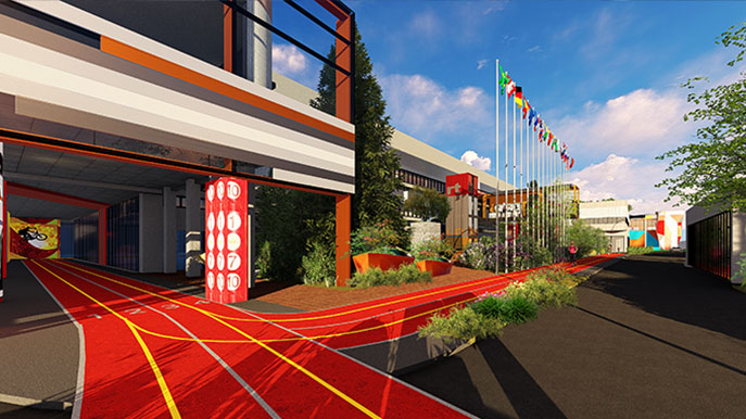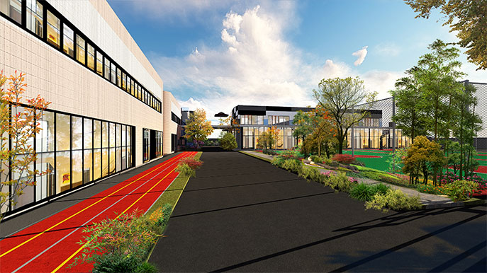 超长跑道连接室内外区域,激情跑步享受工作